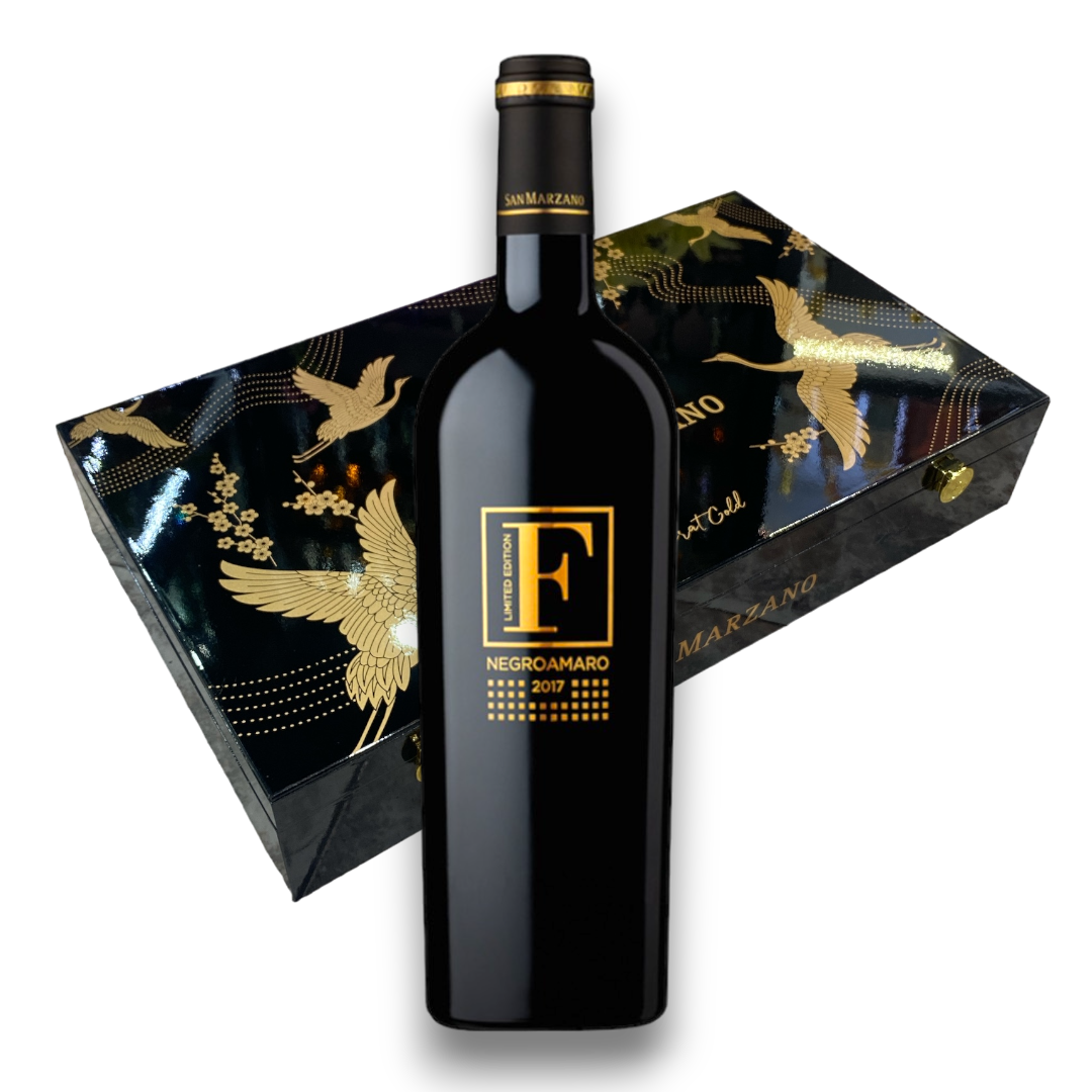 Rượu vang đỏ Ý F Negroamaro - Gold Limited hộp quà tặng sơn mài 6 chai